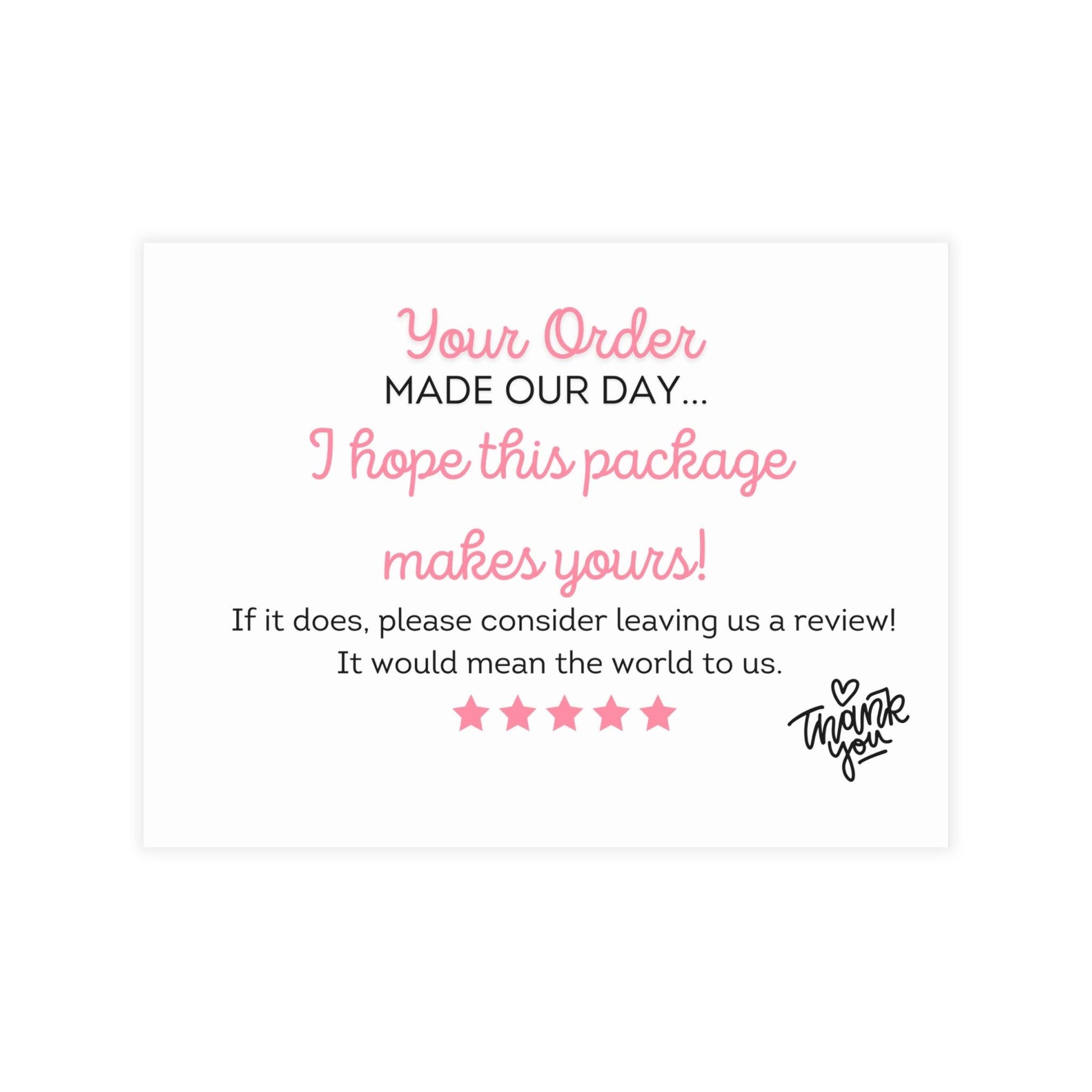 Whether you're thanking your customers, sharing a special message, or adding a unique touch to your orders, these cards are designed to leave a lasting impression. Show your appreciation in style and make every package unforgettable with our Designer Thank You Cards.